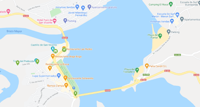 Se encuentra junto a la costa y frente a la marisma de Rubín.